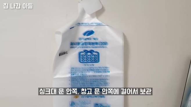 구멍은 작게 내야 봉투가 찢어지지 않음, 봉투틀은 부피 절약 + 미관 개선 효과 있음, 싱크대, 다용도실, 차량 내 등 활용도 높음