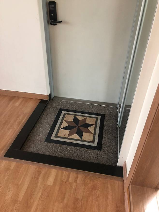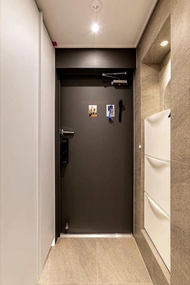 짜잔~ 고급스럽게 변신한 현관이에요. ㅎㅎ 아까 말한 비밀의 분리수거함도 오른쪽에 보이죠? ㅎㅎ