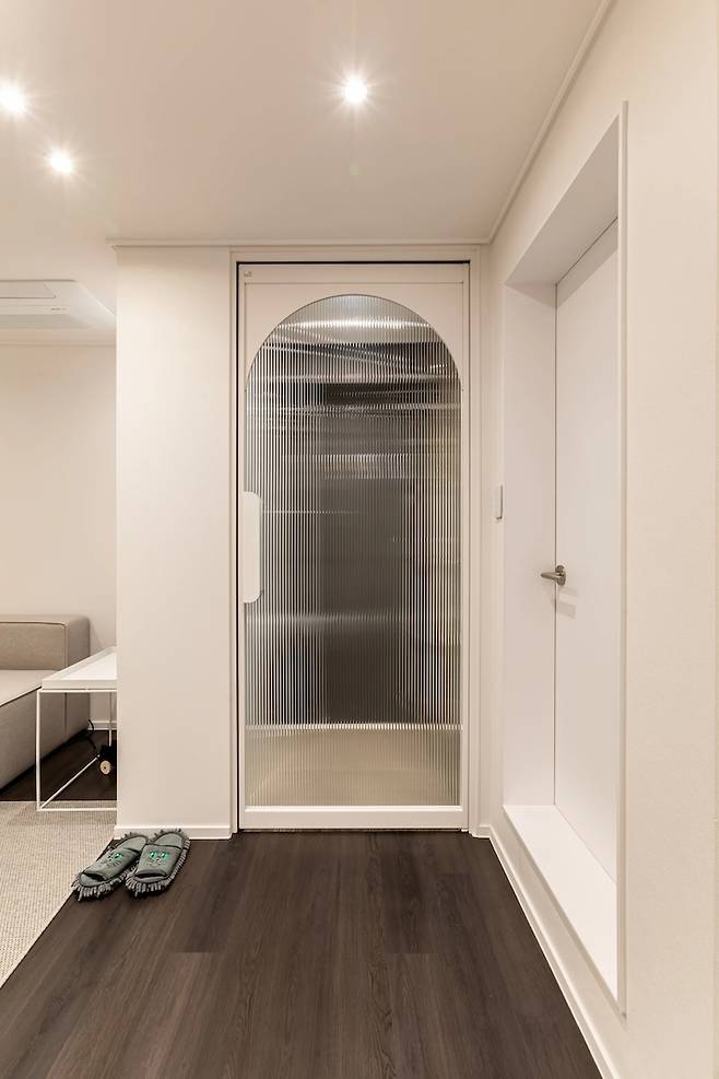 거실에서 본 중문이에요! 적당히 실루엣만 보이는 정도라 딱 좋은 것 같아요.