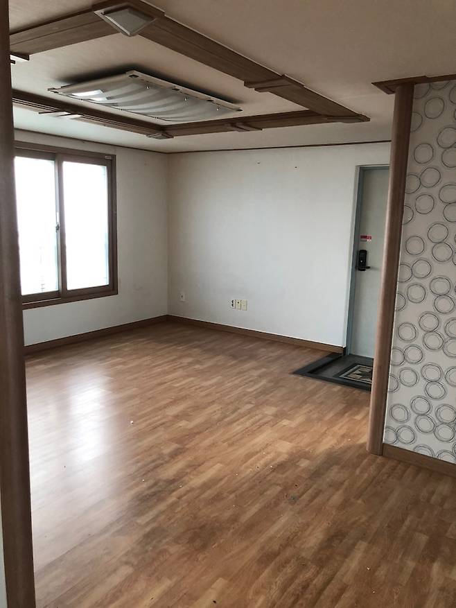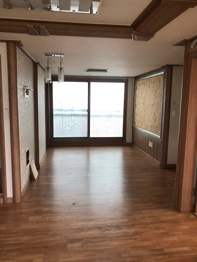 3베이 아파트에서 흔히 볼 수 있는 그런, 현관 들어오자마자 경계 없는 거실구조였어요. 사진에는 안보이지만 기존신발장은 정말 너무 협소해서 바로 철거해버렸어요 ( 잡지꽂이처럼? 신발을 세워야 하는 그런 이상한 신발장요 )
