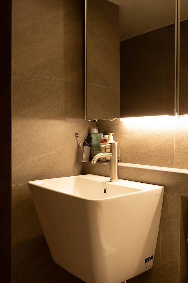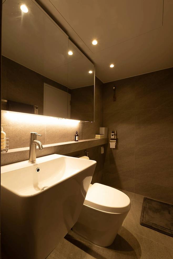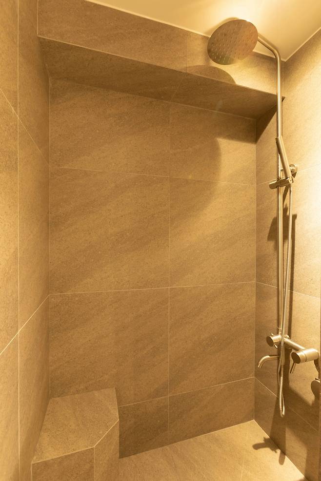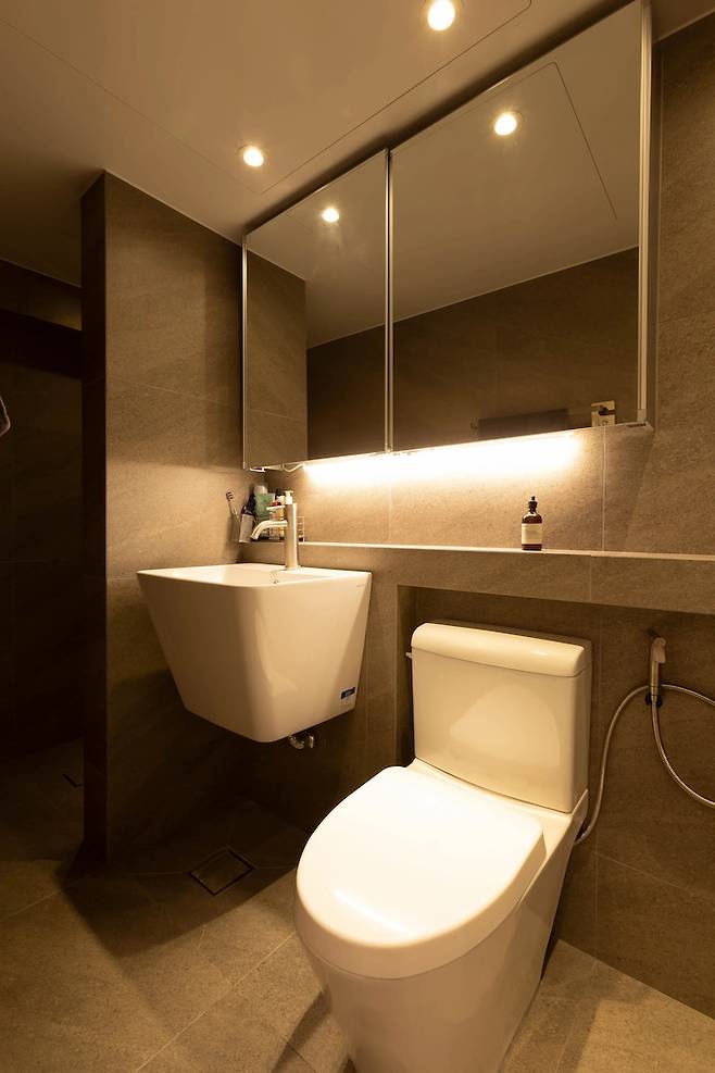 샤워 공간만 단차를 주어, 입구부터 세면대까지는 슬리퍼 없이 건식으로(맨발로) 사용하고 있는데 너무 만족해요! 다음 집에서도 이렇게 사용하고 싶어요~