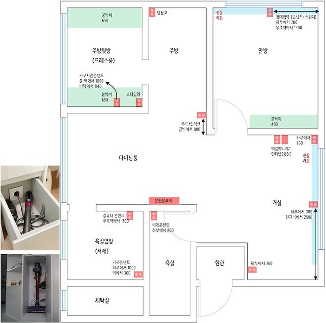 네, 저는 '엄격한 관리자' ESTJ로 엄청난 계획형+ 약간 결벽증이 있는 사람ㅋㅋㅋ 제 머릿속에 이미 가전/가구들이 다 배치되었고, 그 자리에 콘센트가 절대적으로 있으면 좋겠다고 생각했어요. 이게 전셋집 살면서 제일 스트레스 받았던 부분입니다. ㅠㅠ 늘어진 멀티탭이 절 너무 힘들게 했어요