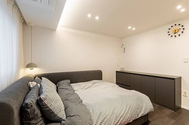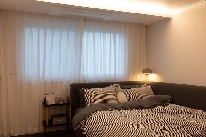 남편과 출근 시간이 달라, 침실과 드레스룸을 완전하게 분리하여 살고 있어요. 한 명이 자고 있을 때 한 명이 출근 준비하면서 깨는 게 너무 싫거든요.
