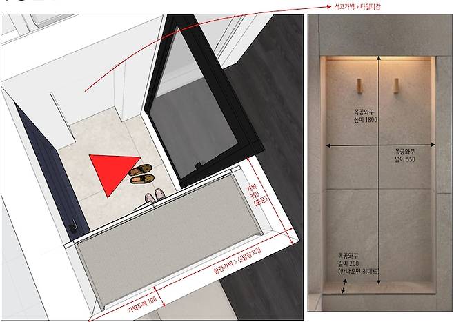 ( 타일 시공 반장님께는 감히 분리수거 자리라고 말할 수가 없었어요. 명품 도자기 넣을 거라고 말함. 크크크 )