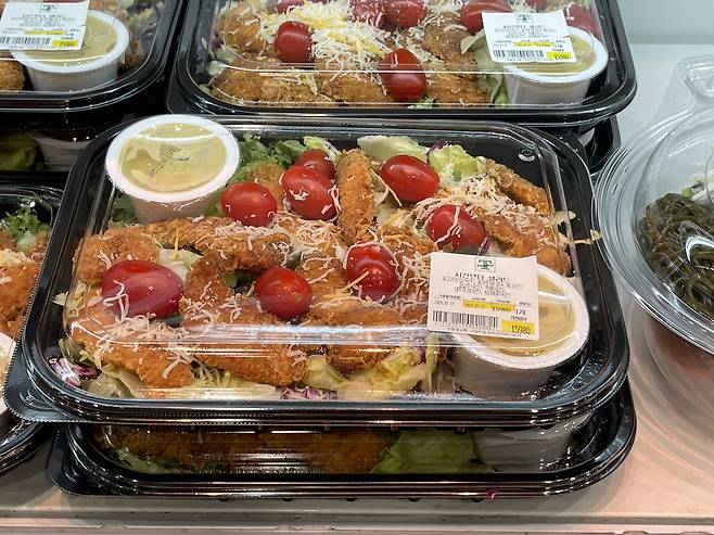 국내 안심 치킨텐더가 듬뿍 올라가 있는 샐러드로 허니머스타드 소스와 함께 새콤달콤하게 즐기는 상품이에요.