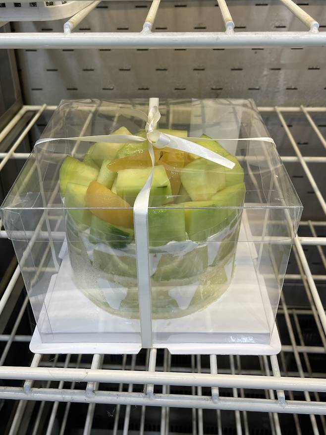 비주얼 극강 프리미엄 메론 생크림 케이크에요.