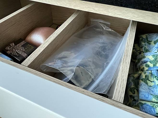 그래서 허리보다 높은 곳, 문이나 서랍 안, 빛이 없는 어두운 공간이 보관하기 딱 좋아요.