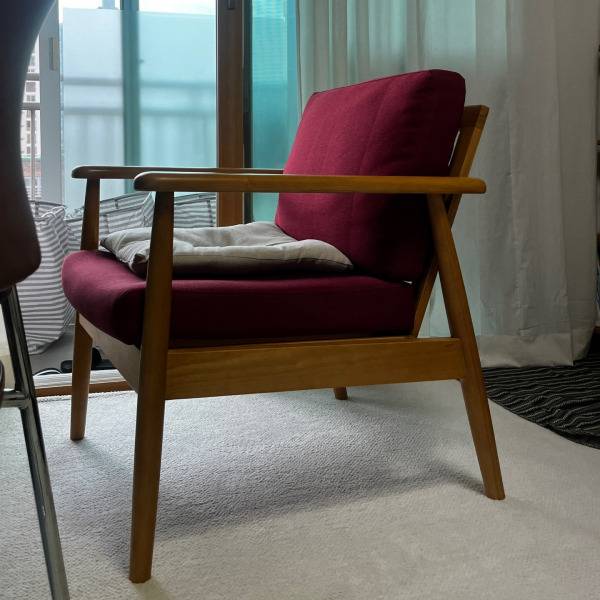 이번에는 화창한 여름, 집에 활기를 더해주고자 과감하게 와인색 패브릭의 1인용 의자를 들였다. 붉은빛이 더해지니 확실히 집에 심심함이 덜해졌다.