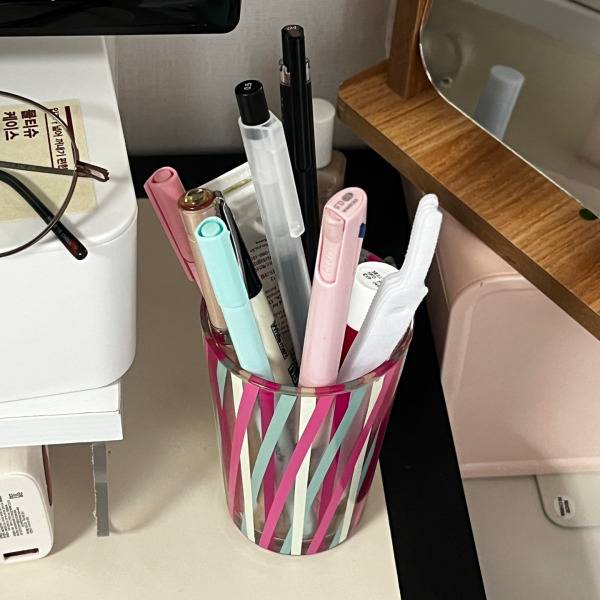 필자는 음료를 담아 마시지 않고 책상 위에서 펜을 꽂으려고 구매했다. 넓이가 넓은 편은 아니라 소품이 많이 보관되지는 않지만, 독특한 디자인으로 포인트 주기에 적합했다.