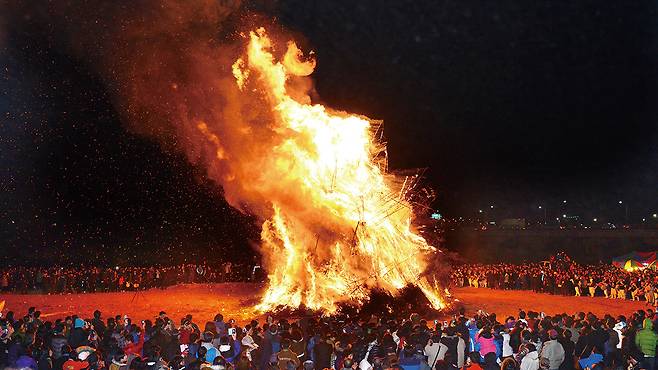무(無) 계열 : 무(無)의 의미를 깨달으면 아마 동아시아 개념의 반은 이해했다고 봐도 된다. 그런데 우리에게는 무의식적으로 이 단어를 감지해 내는 유전자가 있는 것 같다. 먼저 무(無)의 어원은 갑골문에서 ‘춤추는 모습’을 그린 상형문자에서 유래했다. 원래는 舞(춤출 무)와 같은 뜻이었으나, 이후 ‘없다’라는 뜻으로 가차(假借:잠시 빌려 씀)되어 사용되기 시작했다. 여기에서 ‘춤을 춘다’라는 의미를 기억하길 바란다. a0100z는 무(無)라는 글자를 해체하여 살펴보고자 한다. 초(艸)+십(卌:많다)+화(灬:불). 글자를 풀어 보면 풀이 많았는데 불에 타서 재로 변했으며 사라졌다는 의미라고 생각한다. ‘없다’라는 말 전에 어떤 물질이 변했으며 기존의 모습이 사라져 없어졌다는 의미이다. 그런데 다행히 우리에게는 이 어려운 개념을 갓난아기를 업고 있는 엄마가 아기와 함께한 ‘까꿍놀이’에서 배운 것 같다. 아기를 등에 업고 있으면 엄마가 없다. 엄마의 얼굴이 보이지 않기 때문이다. 없던 엄마가 갑자기 ‘까꿍’하고 고개를 뒤로 돌려 나타는데 아기는 이 까꿍놀이에서 ‘없다’와 ‘있다’를 함께 생각한다. ‘없다’가 무존재가 아닌, 있다가 갑자기 사라지고 사라졌다 다시 나타나는 세상의 변화를 우리는 놀이로 배웠다. 우리는 어려서부터 고차원적인 무 유론(無有論) 교육을 받은 것이다. 그렇다면 이렇게 ‘있다가 사라지는’ 마당의 개념은 어디에서 비롯 되었을까? 먼저 인간 체온 36.5℃를 지켜 주기 위해 사람들의 중심에 불이 있었다. 그 불을 중심으로 사람이 모이고 그것이 종교적이고 사회적인 일체감을 가지는 의식으로 이어져간다. 즉 다채로운 행위가 일어난 것이다.