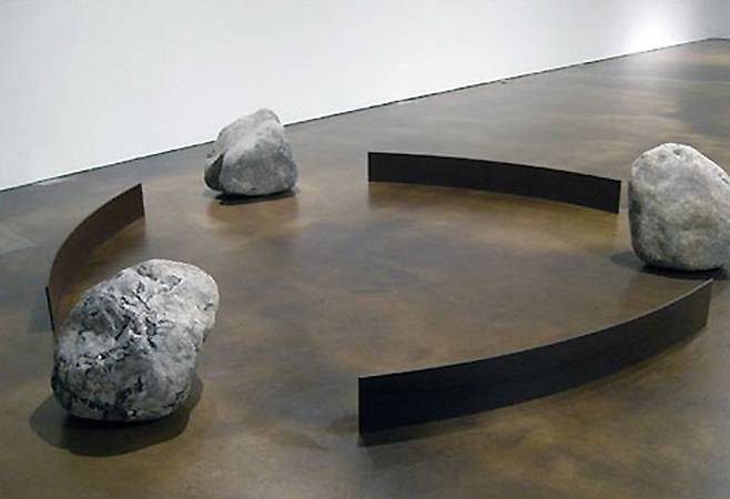 지난 회 소개한 이우항 작가의 <관계항>이라는 작품을 떠올려보자. 무심한 돌과 곡선의 철판으로 만들어진 장(場). 이것을 관계+항이라고 이름 지었다고 한다. 관계라는 말로 이 작품을 설명하지만, 여기에 항(項)이라는 글자를 덧붙여서 현상이 발생할 수 있는 비물질의 여백을 물질로 구체화했다. 관계라는 현상(변화)을 위해 항(項:목덜미)이라는 인터페이스(Interface)가 놓인다는 것이다.