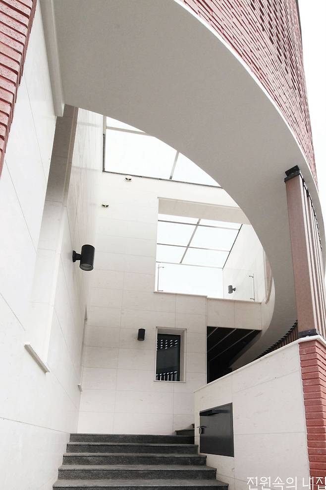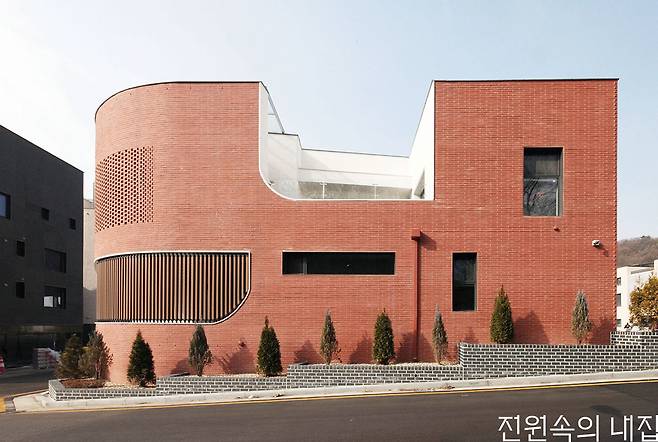 부드러운 곡선과 견고한 적벽돌이 만들어낸 가족들만의 안온한 보금자리. 프라이버시 보호와 자연과의 조화를 모두 누릴 수 있다.