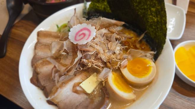 공기밥과 육수가 무료로 제공되어, 남은 국물에 저희 곰돌이들은 밥을 말아 먹는 재미도 쏠쏠했습니다. 전체적으로 양도 넉넉해 한 그릇만으로도 든든하게 식사할 수 있었고, 일본 라멘의 분위기와 한국식 감칠맛을 모두 느낄 수 있는 만족스러운 방문이었습니다.