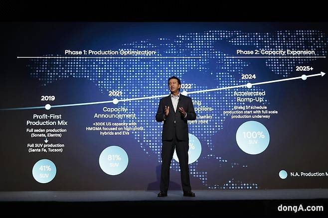 18일 미국 뉴욕 맨해튼에서 열린 ‘2025 CEO 인베스터데이’는 현대차가 해외에서 처음 개최하는 투자자 설명회였다. 무뇨스 사장은 “현대차는 15년 넘게 조지아주에서 사업을 해왔고 미국 제조업에 대한 확고한 의지는 변함없다”며 미국 투자 확대 의지를 강력히 드러냈다.