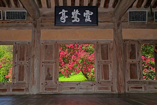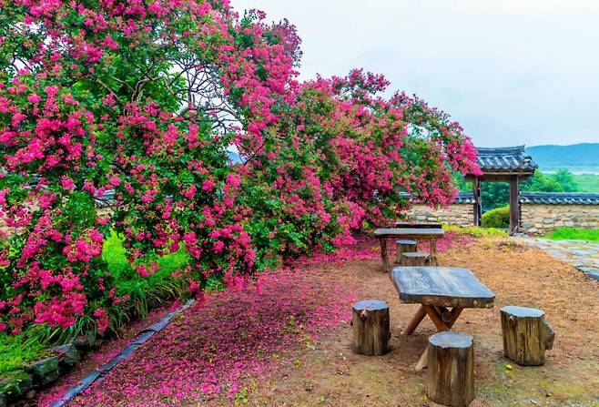 하목정의 매력은 여름에 더욱 빛난다. 배롱나무꽃이 정자를 감싸며 붉은 물결을 만들고, 바람이 불면 꽃잎이 마당과 돌담 위로 흩날려 장면마다 그림 같은 풍경을 완성한다. 이 때문에 사진가와 여행객들이 여름이면 꼭 찾는 명소로 자리 잡았다.