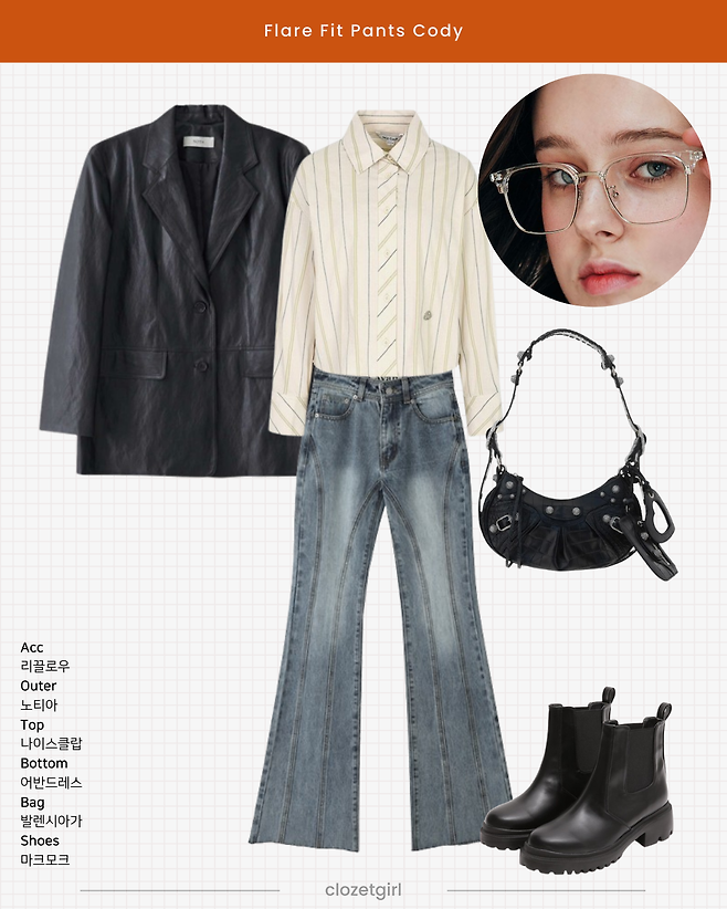 플레어진 + 레더자켓 #힙하게