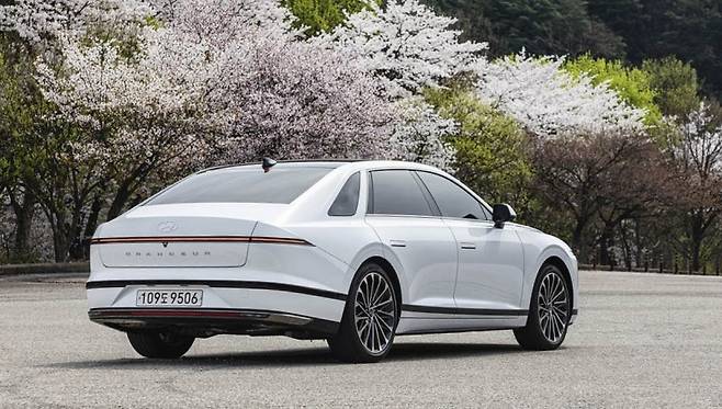 측면부의 경우 전면부나 후면부에 비해 비교적 변화의 폭이 크지 않을 것으로 예상됩니다. 하지만 새로운 디자인의 휠이 적용되어 측면부의 세련미를 더할 것으로 보입니다. 휠 디자인은 차량의 전체적인 인상을 좌우하는 중요한 요소인 만큼, 이번 페이스리프트에서는 더욱 고급스럽고 역동적인 디자인의 휠이 적용될 가능성이 높습니다. 후면부는 아직 두꺼운 위장막에 덮여 있어 구체적인 변화를 파악하기 어렵지만, 지금까지 유출된 정보와 예상도를 종합해보면 테일램프의 디자인 개편이 유력합니다. 특히 현행 모델에서 지적받았던 범퍼 하단 방향지시등의 위치가 테일램프 쪽으로 옮겨질 것으로 예상되어 큰 환영을 받을 것으로 보입니다. 이는 운전자의 시인성을 획기적으로 개선하여 안전성을 높이는 동시에, 후면부 디자인의 일체감과 완성도를 극대화하는 중요한 변화가 될 것입니다. 더욱 깔끔하고 정돈된 후면부는 그랜저의 품격을 한층 높여줄 것입니다.