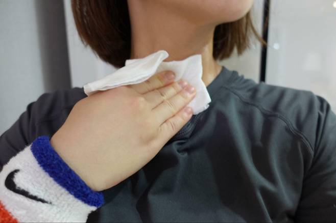 티슈로 피부를 닦아낸 직후의 반응은 사람마다 달랐다. 물티슈형으로 목덜미를 훔친 지인은 “피부에 남은 물기가 썩 기분 좋게 느껴지지 않는다”고 평가했다. 반면 홈 트레이닝 직후 빅사이즈 티슈를 사용한 남편은 “베이비파우더로 몸을 닦는 느낌”이라며 “물기가 더 많으면 좋을 것 같다”고 했다.