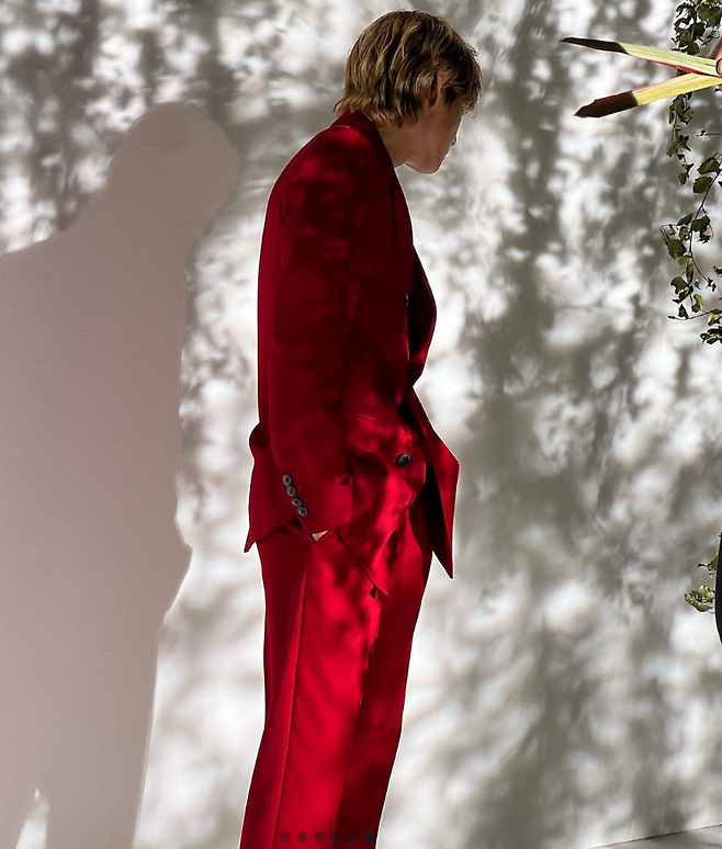 지난해 공개된 까르띠에 화보에서는 붉은 수트를 착용한 모습으로 등장했다. 이어진 공식 사진과 영상 콘텐츠는 여러 온라인 커뮤니티와 SNS에서 빠르게 확산됐다.