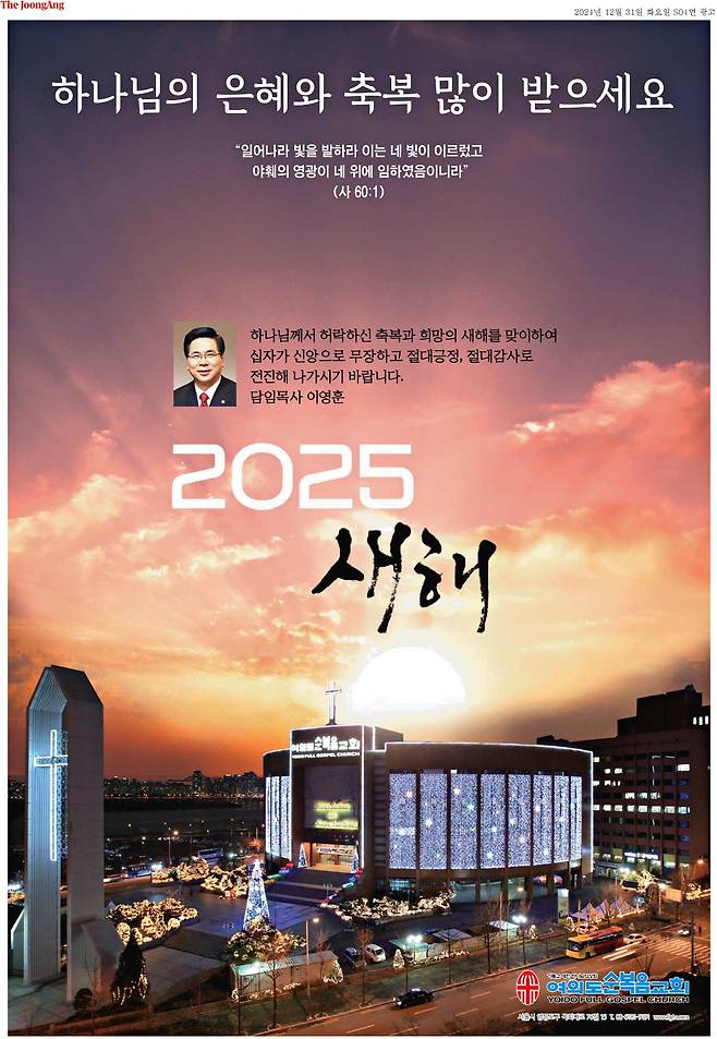 [50억] 여의도순복음교회가 신문에 전면광고를 실었네요.
