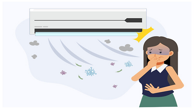 ํนํ ์ฅ๋ง์ฒ ์ด๋ ์ฌ์ฉ ๋น๋๊ฐ ๋ฎ์๋ ์์ด์ปจ์ ๋ด๋ถ์ ์ต๊ธฐ์ ๋จผ์ง๊ฐ ์ค๋ ์์ฌ ์์์ ๊ฐ๋ฅ์ฑ์ด ๋์, ์ด๊ธฐ์๋ ๋ฐ๋ณต์ ์ธ ์ธ์ฒ์ด ํ์์ ์ด๋ค.