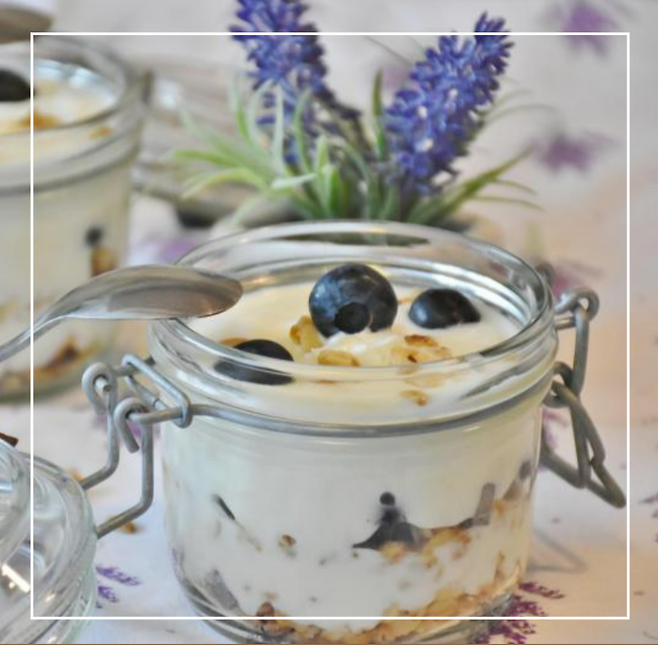 방법: 그릭 요거트에 견과류, 씨앗, 베리류를 넣어 섞어 섭취.