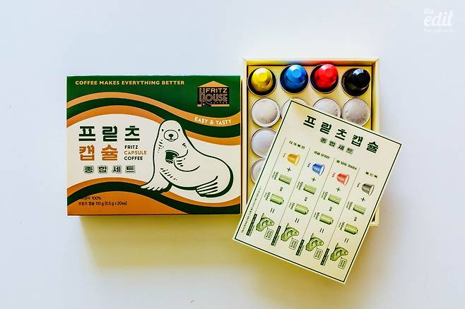 일반적으로 중배전 로스팅 블렌딩의 경우에는 캡슐커피로 추출할 경우 수율 (커피 추출 비율)이 적어 밸런스가 깨지는 경우가 많은데, 상당히 근사한 밸런스와 아름다운 향미를 선보였다. 이외에도 싱글오리진과 디카페인 블렌딩도 상당히 인상적이었다. 프릳츠 커피 캡슐의 디자인은 물개를 비롯한 다양한 이미지들과 개성 있는 엠디 상품들이 눈에 띄는데, 프릳츠 캡슐커피의 화려한 디자인이 소비자들에게 매력적으로 어필하고 있다. 두 가지 블렌딩과 싱글오리진으로 구성된 프릳츠커피의 캡슐세트는 비주얼도 좋고, 품질도 좋아서, 당일 참가한 패널들사이에도 인기가 높았다. 구매 링크는 [여기](https://bit.ly/3BQ5jv7).