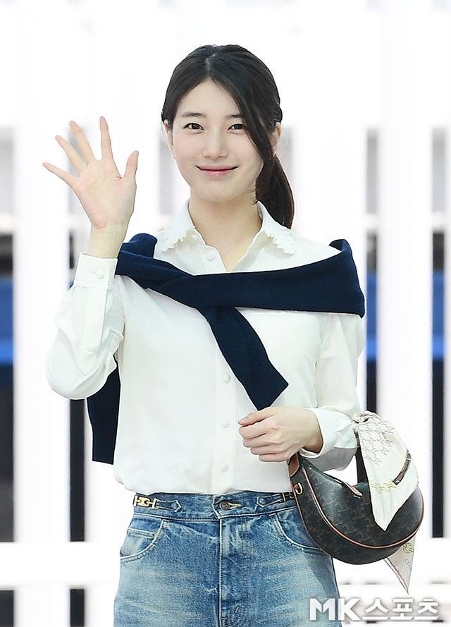 수지가 단정하면서도 세련된 공항패션으로 다시 한번 ‘원탑 비주얼’의 저력을 과시했습니다.