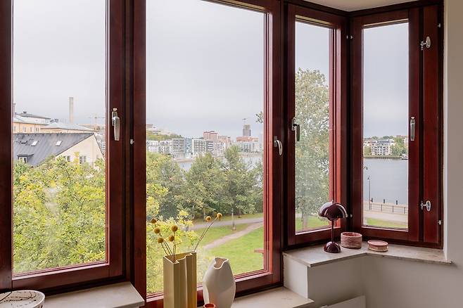 이곳에 놓인 붉은색 창틀과 싱그러운 초록 식물은 화이트 공간에 자연의 색을 한 스푼 더해 생동감을 불어넣습니다.