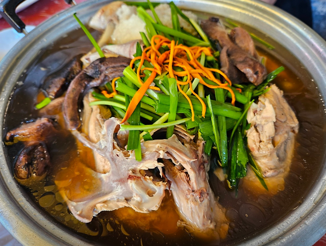 한방백숙: 큼직한 토종닭과 능이, 감초, 대추 등 한방재료가 들어가 깊고 진한 국물 맛을 자랑합니다. 닭죽까지 꼭 챙겨 드셔야 해요.