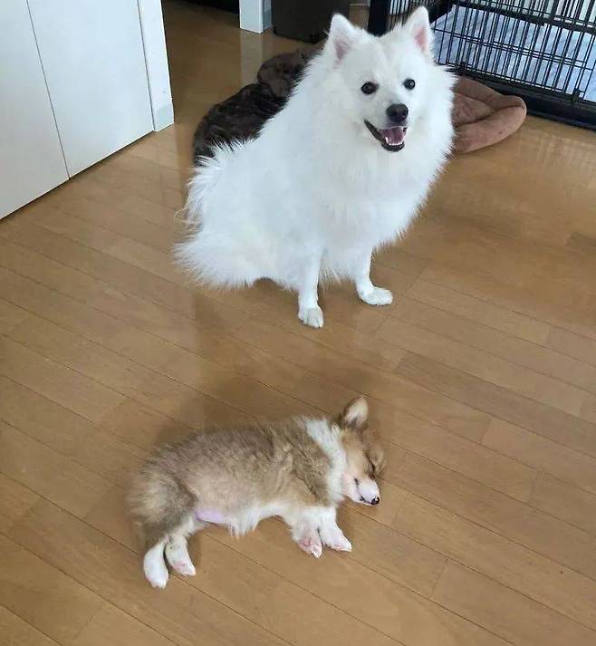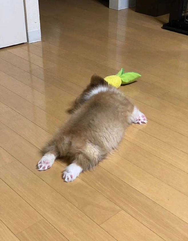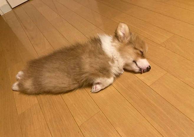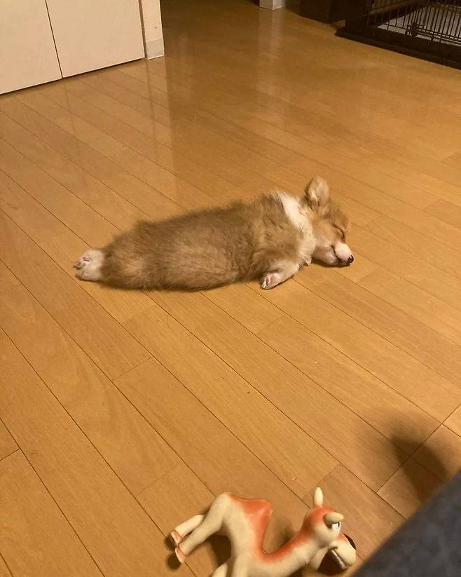 다른 네티즌의 작은 웰시코기도 놀기 좋아하는 성격에 한창 자랄 때라 잠이 많아서, 놀다가 자주 그 자리에서 잠들어버리는군요!