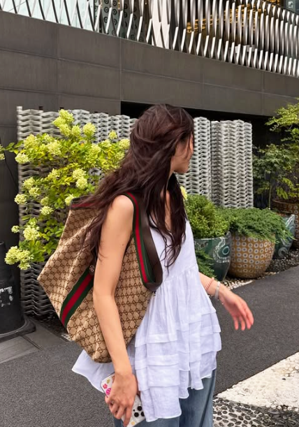 구찌 토트백으로 완성된 Y2K 감성… 실용성과 스타일 모두 잡은 연출