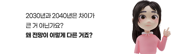 반면 2022년 4월 글로벌 에너지 정보분석기업 S&P 글로벌 플래츠(S&P Global Platts)에 의하면 2030년 전기차 판매량은 약 2,700만 대로 전체 자동차 시장에서 30%대의 비중을 차지하고, 2040년에는 약 54% 정도의 점유율을 기록할 것으로 전망을 했습니다.