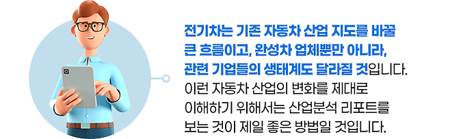 또한, 유럽 연합에서는 2035년부터 내연기관 자동차 판매를 금지할 것이라고 하여 2030년대를 자동차의 대전환이 될 것이라고 예측하고 있는 것입니다.