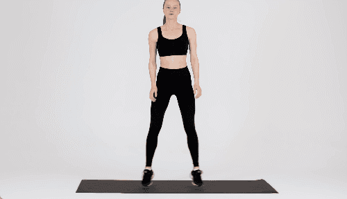 다리를 넓게 벌리고 스쿼트 자세로 앉습니다. 원래 자세로 돌아올 때 점프하여 발을 모아주고, 다시 점프하며 다리를 넓혀 스쿼트로 연결합니다.