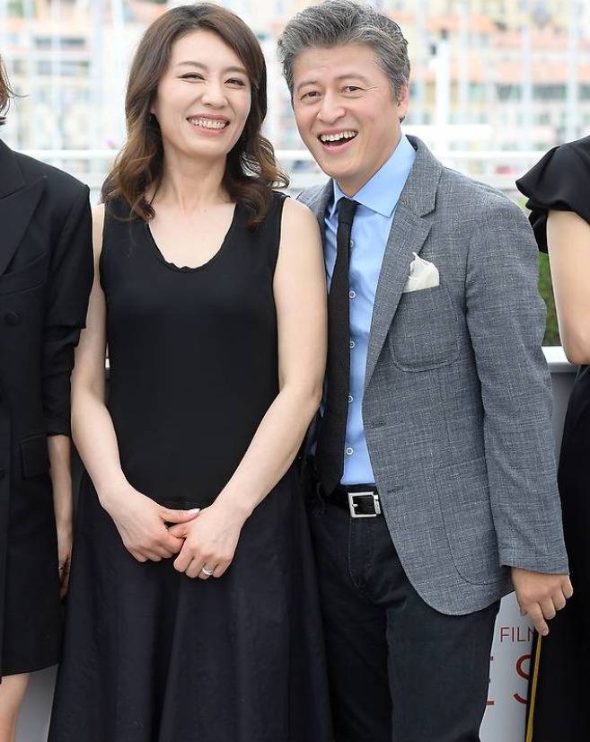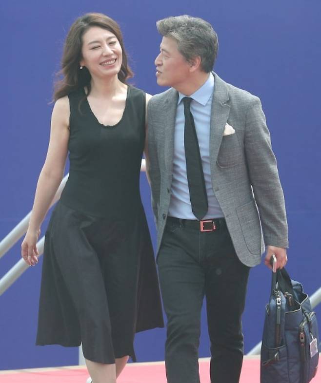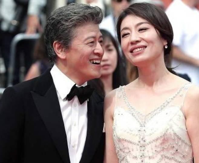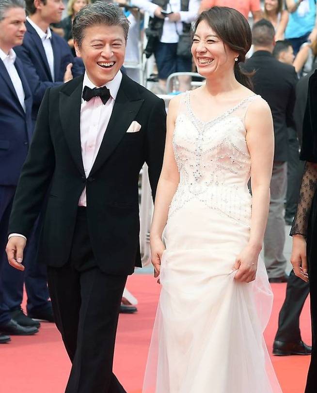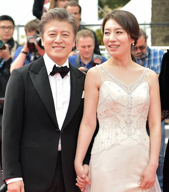 영화에서 부부로 연기한 권해효와 조윤희가 칸에서 완벽한 스타일링을 뽐냈다.