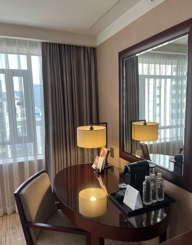 이렇게 디럭스 룸 혹은 이그제큐티브 룸에서는 비즈니스 지원이 잘 되어 있으니 출장 차 방문할 때에도 편리하게 이용할 수 있어요.