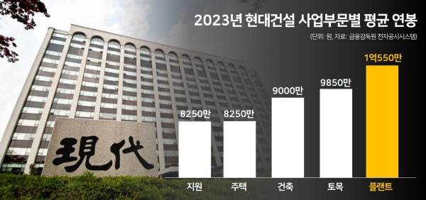 금융감독원 전자공시시스템에 게시된 사업보고서에 따르면, 지난해 기준 현대건설 전체 직원 7204명의 평균 연봉은 1억500만원인 것으로 집계됐다.
