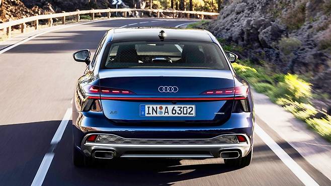 유럽 시장의 V6 3.0 TFSI 콰트로나 디젤 모델은 이번 국내 인증에서 제외되어, 효율 중심의 전략으로 해석된다. 전장 4,999mm, 휠베이스 2,927mm의 5인승 대형 세단으로 여유로운 실내 공간을 제공한다.