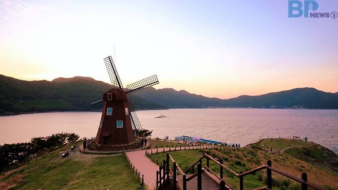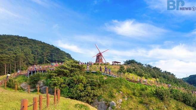 언덕에 오르면 바다와 하늘, 언덕과 마을이 한눈에 들어온다. 특히 여름철에는 바다에서 불어오는 바람이 뜨거운 햇볕을 식혀주며, 일몰 시간대에는 바우산까지 붉게 물든다. 포토존은 풍차 주변뿐 아니라 언덕 곳곳에 흩어져 있어, 계절마다 다른 분위기를 느낄 수 있다.