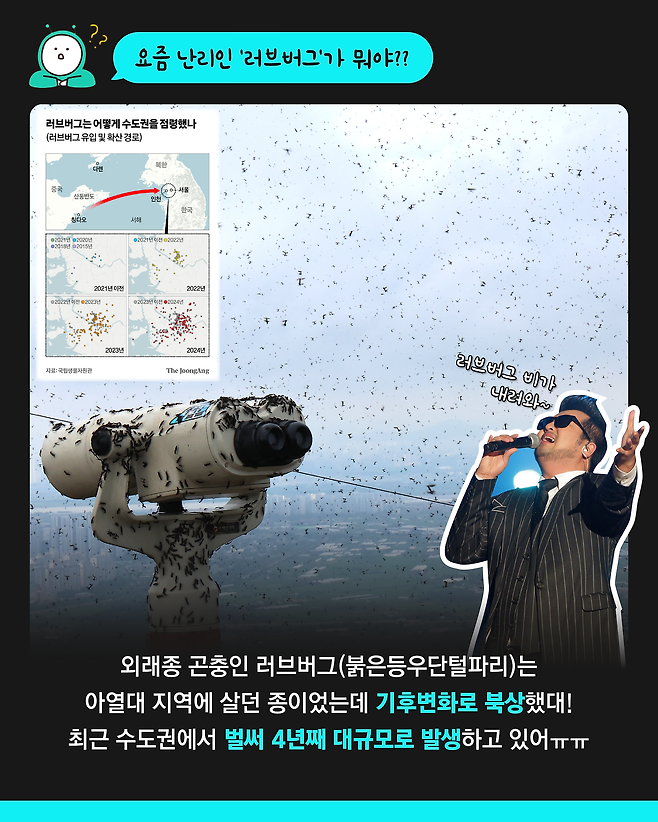 외래종 곤충 러브버그(붉은등우단털파리)는 기후 변화와 도시 환경에 최적화되어 최근 수도권에서 대규모로 번식 중입니다.