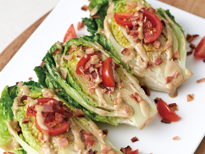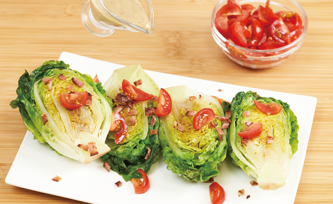 시저 샐러드의 주재료가 바로 로마인들이 즐겨 먹었다고 해서 이름도 '로메인'이라는 잎채소랍니다. 요즘 많은 사랑을 받는 '로메인 하트(미니 로메인)'를 통째로 굽고, 정통 시저 샐러드에 들어가는 것보다 훨씬 간단한 드레싱을 이용한 로메인 샐러드는 훌륭한 메인 디시로도 손색이 없답니다. 나이프로 우아하게 썰어 먹어도 전혀 어색하지 않은 풍부한 맛의 샐러드 요리를 소개합니다.