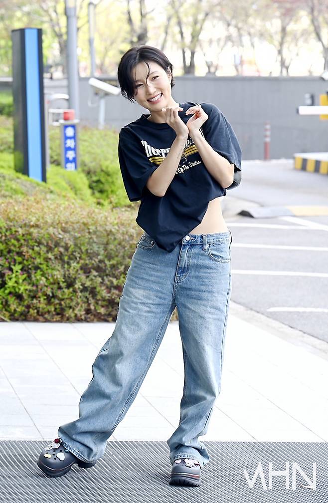 (MHN 이지숙 기자) 가수 화사가 지난 14일 오후 서울 상암 MBC신사옥에서 열린 라디오 '정오의 희망곡 김신영입니다' 출근길에 포즈를 취하고 있다.