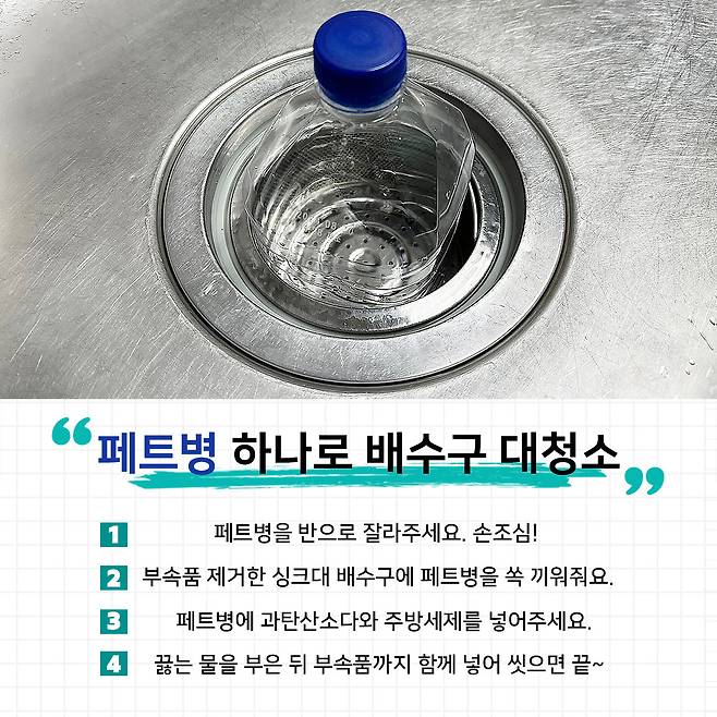싱크대 배수구 청소의 치트키는 ‘페트병’ 되시겠습니다.