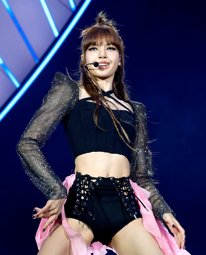 리사는 록스타에서 영감을 받은 크리스탈 장식 긴팔 볼레로와 레이스업 쇼츠를 선택했고 로제는 핑크 쉬폰이 달린 블랙 바디 슈트룩을 선보였다.