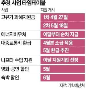 소득 하위 70% 국민에게 1인당 10만~60만원을 지급하는 고유가 피해지원금은 1차(4월 27일)와 2차(5월 18일)로 나눠 지급한다.