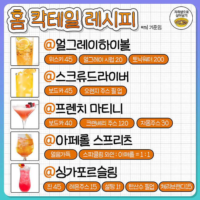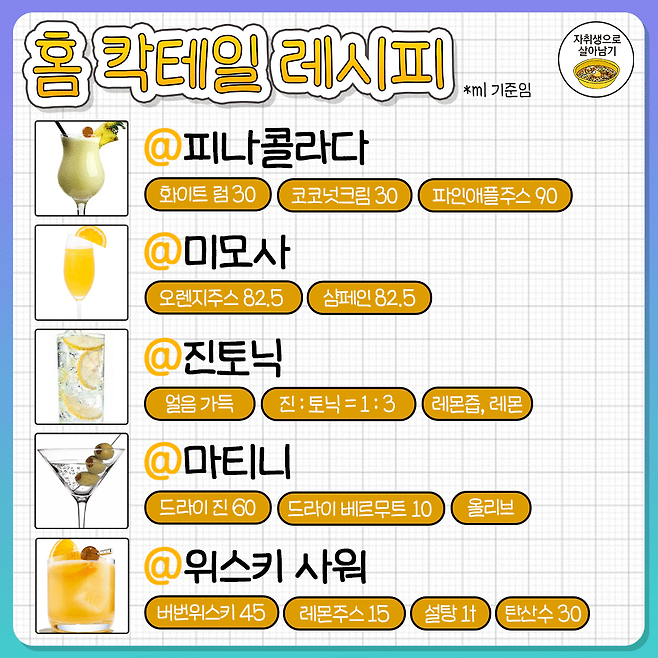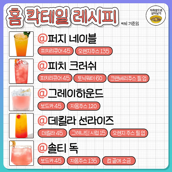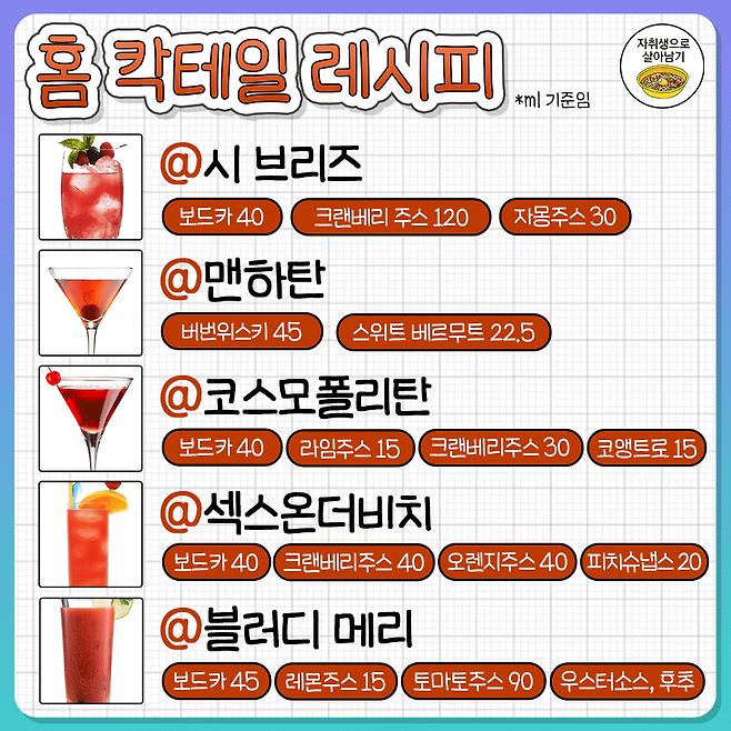 집에서 쉽게 만드는 홈칵테일 레시피 30가지