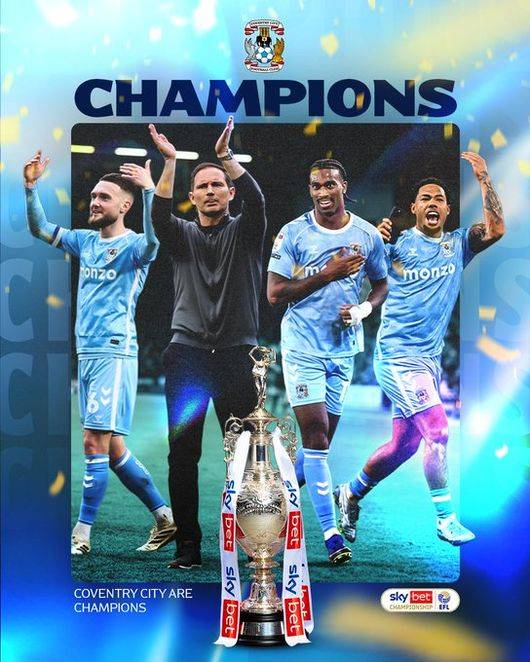 코번트리는 이미 지난 18일 블랙번 로버스전 무승부로 프리미어리그 승격을 확정한 상태였다. 그리고 안방에서 대승과 함께 우승 트로피까지 들어 올리면서 59년 만의 챔피언십 우승, 9113일 만의 1부 리그 복귀에 성공했다. 2019년 더비 카운티에서 승격에 실패했던 프랭크 램파드 감독도 이번엔 우승으로 다이렉트 승격을 일궈내며 활짝 웃었다.