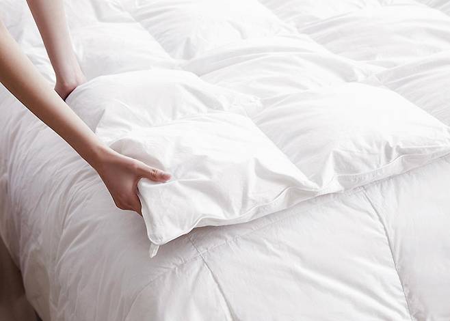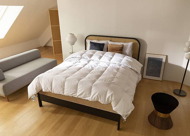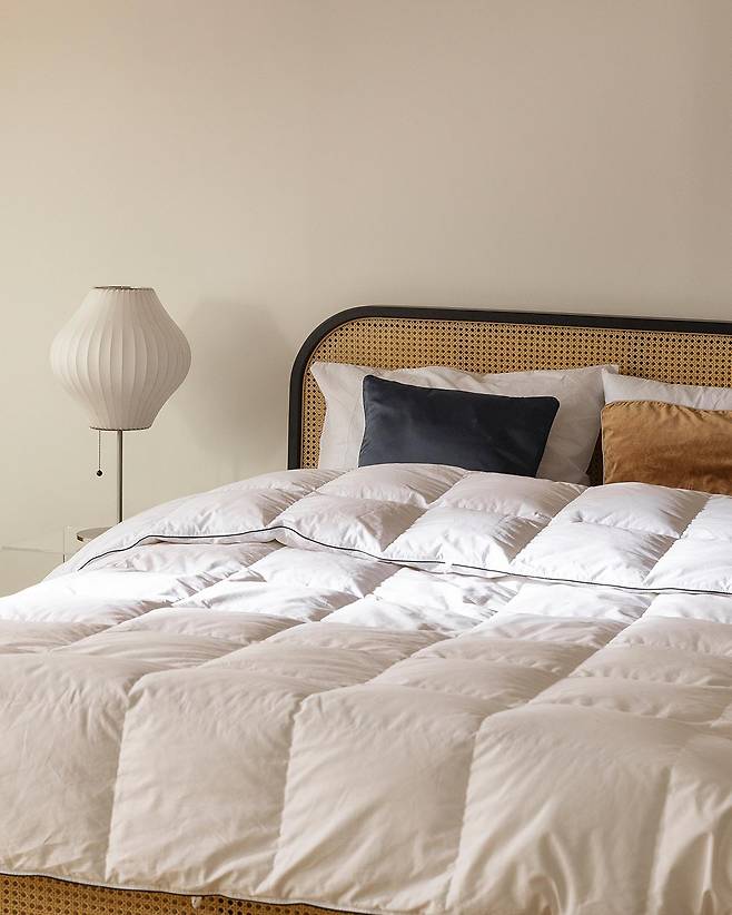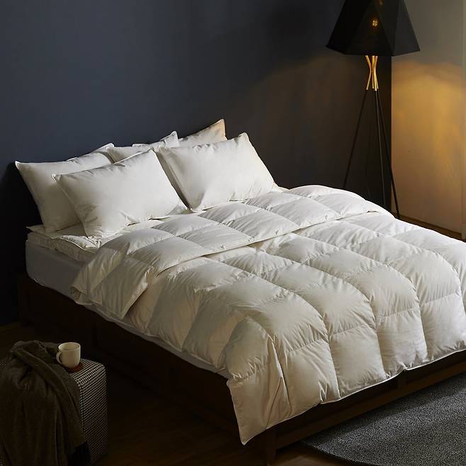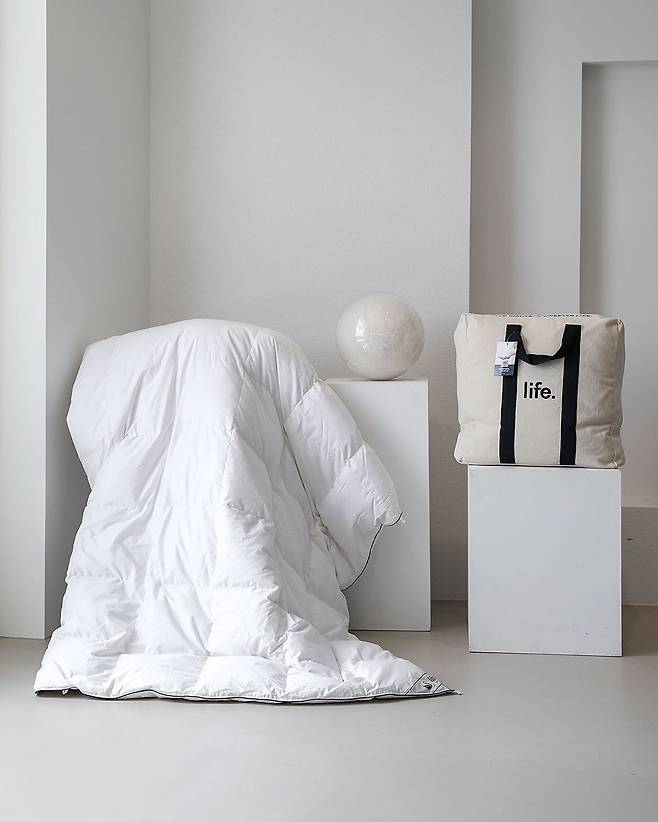 겨울용 프리미엄 라이프 구스는 3년 이상 농약을 쓰지 않은 유기농 목화솜 원단이 사용됐다. 거기에 3D 입체 봉제와 장인의 마감으로 입자가 작은 마이크로 구스다운이 빠져나오지 않고 온기를 유지할 수 있다. 하이엔드 패딩 3벌의 구스 양만큼 들어간 본 제품의 또 다른 포인트는 블루 파이핑. 침구 외곽에 라인 디자인을 더해 이불만으로 침실이 스타일리시해 보일 수 있게 했다. 겨울용 프리미엄 구스다운 139만 원