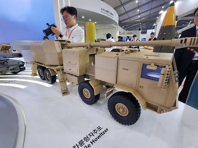 한화에어로스페이스는 작년 2024년 충남 계룡시에서 열린 '대한민국 국제방위산업 전시회(KADEX)'에서 무인 포탑을 탑재한 155mm 차륜형 자주포 모형을 선보였습니다.